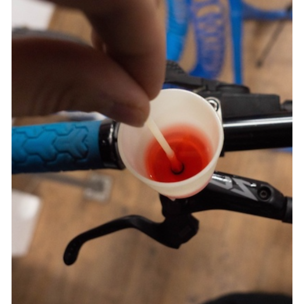 Befüllung mit hochwertiger Bremsflüssigkeit (Mineralöl oder DOT, je nach Hersteller).